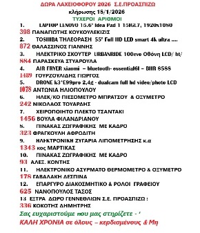Οι τυχεροί φίλοι της λαχειοφόρου μαςαπό adminpro28 Ιανουαρίου 2026 Αφήστε μια απάντησηΗ ηλ. διεύθυνση σας δεν δημοσιεύεται. Τα υποχρεωτικά πεδία σημειώνονται με *Όνομα Email Ιστότοπος Σχόλιο * Δ